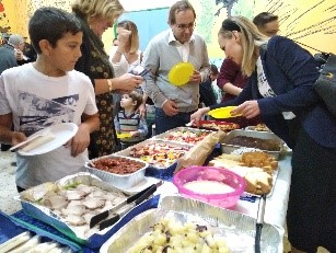 Ezek után kezdetét vette a közös ebéd, amihez mindenki saját készítésű magyaros (vagy olaszos) ételekkel járult hozzá. A kötetlen beszélgetés kiváló alkalmat adott arra, hogy az egyébként egymást kevéssé ismerő, egymással ritkán találkozó szicíliai magyarok megismerhessék egymást. A tervezett Magyar Iskola ötlete lelkes fogadtatásra talált, és a magyar anyukák számos kulturális programötlettel és javaslattal keresték meg a szicíliai KCSP ösztöndíjast.