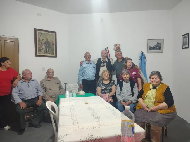 2025 október 12-én egy felemelő alkalomra került sor: nótaestet tartottunk Du Graty faluban! Ekkorra már mindenkit megismertem a vidéken, aki még beszél magyarul, és mindenkivel énekelgettem is. Az alkalomra végül négy idős (80 év feletti) magyar leszármazott gyűlt össze a Du Graty Magyar Házban, és vagy két tucat fiatal, akik kíváncsiak voltak arra, hogy milyen is magyarul énekelni. Néhány ének szövegét Whatsapp-csoportokban osztottuk meg a fiatalokkal, hogy ők is velünk tudjanak énekelni. A “nótaestről” itt található egy felvétel, de a helyi Tv is sugárzott egy kis összeállítást; a magyar ének a spanyol riport után hallható.