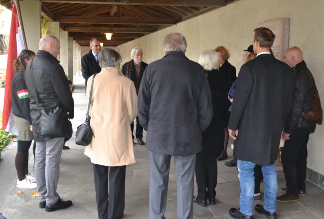 „Emlékezzünk most mi is arra a napra, amikor Bernben, sőt egész Svájcban megszólaltak a harangok, együtt zúgtak Magyarországért, és a svájciak háromperces néma csenddel emlékeztek meg a magyar hősökről 1956. november 20-án 11 óra 30 és 11 óra 33 perc között. Szabadság, haza, demokrácia. Ezek olyan értékek, amelyekért mindig érdemes lesz kiállni. Erre emlékeztet bennünket ma is a szabadság napja, a legfiatalabb nemzeti ünnepünk” – zárta a beszédét Nógrádi-Barkaszi Zsófia. Ezt követően jómagam léptem a jelenlévők elé, és felolvastam Farkas Katalin Ötvenhatos magyar zászló című versét, majd a Himnusz közös éneklésével zárult a program.