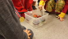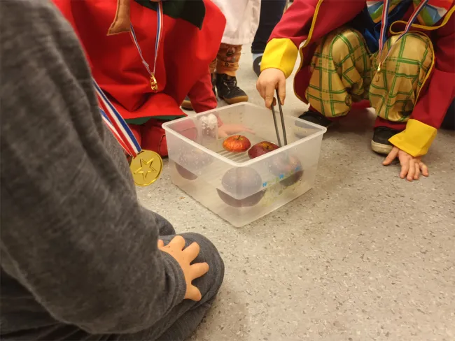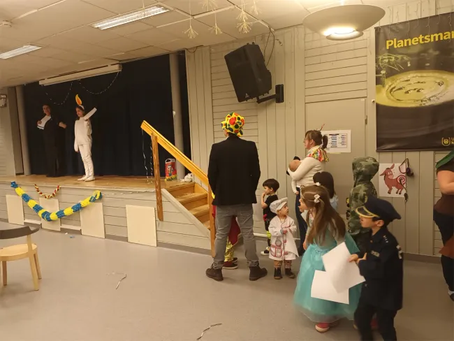 Aki elég bátornak bizonyult megmutatni a jelmezét, egy érmet kapott a nyakába. Élőzenét két stockholmi apuka, és a Kőrösi Csoma Sándor Program ösztöndíjas biztosított egy mini koncert erejéig, de később talpalávalót is pengettek, fújtak. Majd újabb játékok következtek, még a limbó léc is előkerült. Batyus bál lévén az egész délután alatt a vendégek által készített terülj-terülj asztalkám szolgáltatta a hagyományos farsangi fánkok, sütemények, gyümölcsök tömkelegét. Az egybegyűlt egerek, szakácsok, katonák, bohócok, macskák nagyon jól megfértek egymás mellett, és pár órára sikeresen megfeledkeztek a kinti jeges tájról.