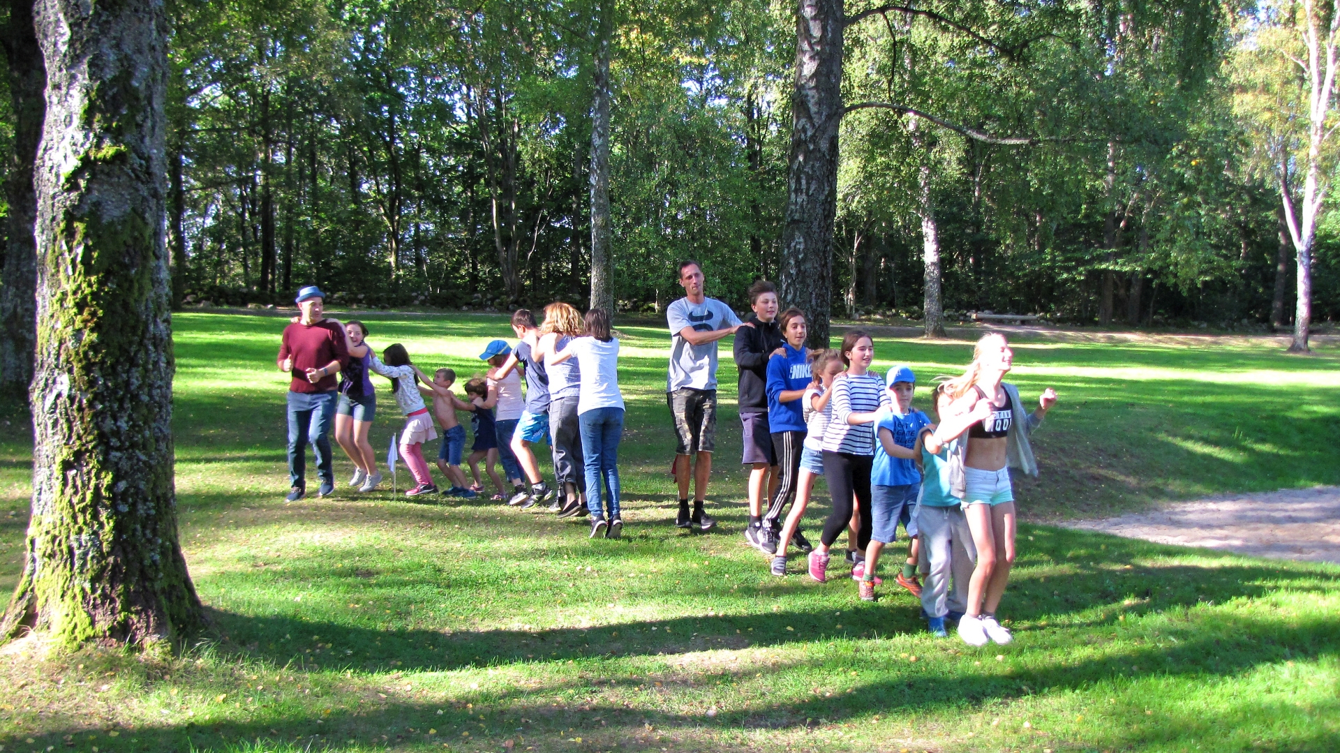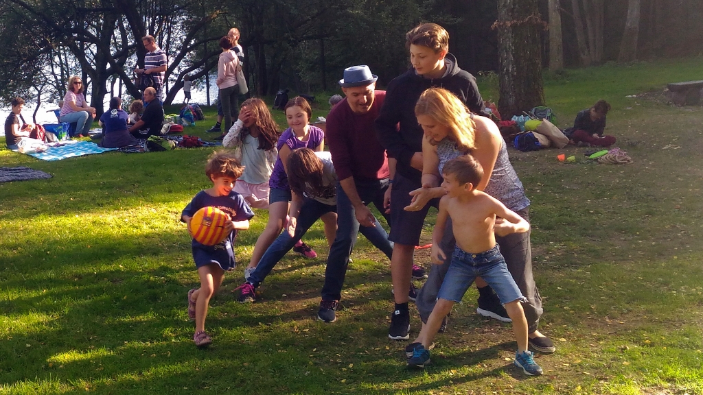 Így aztán nem csoda, hogy sokan eljöttek kirándulásunkra! Körülbelül 50 fő részvételével zajlottak a nap izgalmasabbnál izgalmasabb programjai. Elsőként a gyerekek és a vállalkozó szellemű szülők játékos sorversenyeken vehettek részt. Az egyenlően kialakított két csapat, a Hunikornisok és a Jégtigrisek ügyességi feladatokban mérték össze tudásukat. Volt szökdelő oszlop, sorverseny vállfogással és bokafogással, váltóverseny, adogatás a fej fölött és a lábak között, de a versenyzők még a kézen járó százlábúval és a pókváltóval is megbirkóztak. A feladatok során együtt izgultunk, együtt nevettünk. Végül a Hunikornisok kiegyenlített küzdelemben 10 – 9-re legyőzték a Jégtigriseket, és a csapatok átvehették nyereményüket, többek között egy csomag Franciadrazsét és Dunakavicsot egyenesen Magyarországról!