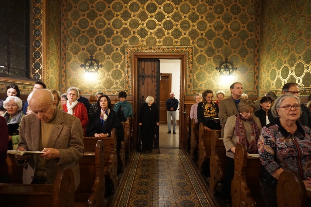 Ismét kicsinek bizonyult a Pázmáneum kápolnája, sokan csak az előterében tudtak csatlakozni az imához, amelyet az első adventi gyertya lángja fölött mondtunk el, és amelyben kértük a kegyelmet, hogy Krisztus, akire várakozunk, karácsony ünnepén a mi szívünkben is megszülessen. „Az advent örömteli időszak, amely arra irányítja a figyelmünket, hogy az Úristen eljön, közel akar lenni hozzánk, be akarja tölteni az életünket és üdvözíteni akar bennünket. Ennek hírére, éppen gyengeségeink és gyarlóságaink tudatában, jó, ha elgondolkozunk azon, hogy mennyire vagyunk erre fölkészülve, mennyire tudunk erre lelki életünkben is rendezetten várakozni” – emelte ki szentbeszédében Varga János rektor atya, hangsúlyozva a figyelmesség, az éberség, a bűnbánat megtartása, az odaadás fontosságát. „Számíthatunk az Úr Jézus szeretetére és irgalmasságára. A mi életünkben is a szeretet legyen a meghatározó mindabban, ami velünk és közöttünk történik” – tette hozzá.