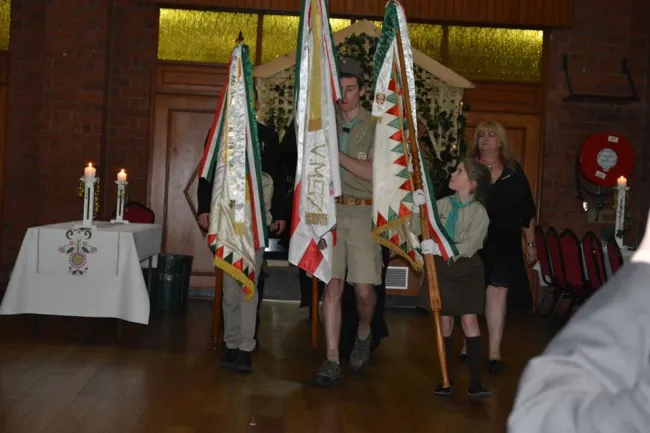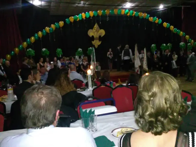 Megérkezve a helyszínre, az összes cserkész kapott egy kis cserkész nyakkendőt, amit kitűzhetett a ruhájára. Én is kaptam, és büszkén viseltem az este folyamán. Az esti program fél 8-kor kezdődött. Köszöntötték a vendégeket, majd a cserkész zászlók bevonulásával felszólították az összes jenlegi és volt cserkészt, hogy vezetőjükkel együtt sorakozzanak a színpad előtt. Ezután elhangzott a cserkészinduló, mely számomra nagyon megható volt. Nagyon felemelő élmény azt látni és átélni, hogy itt mondhatni a „világ végén” így összetart egy nagy magyar csapat. Teljesen libabőrös lettem ettől az érzéstől.