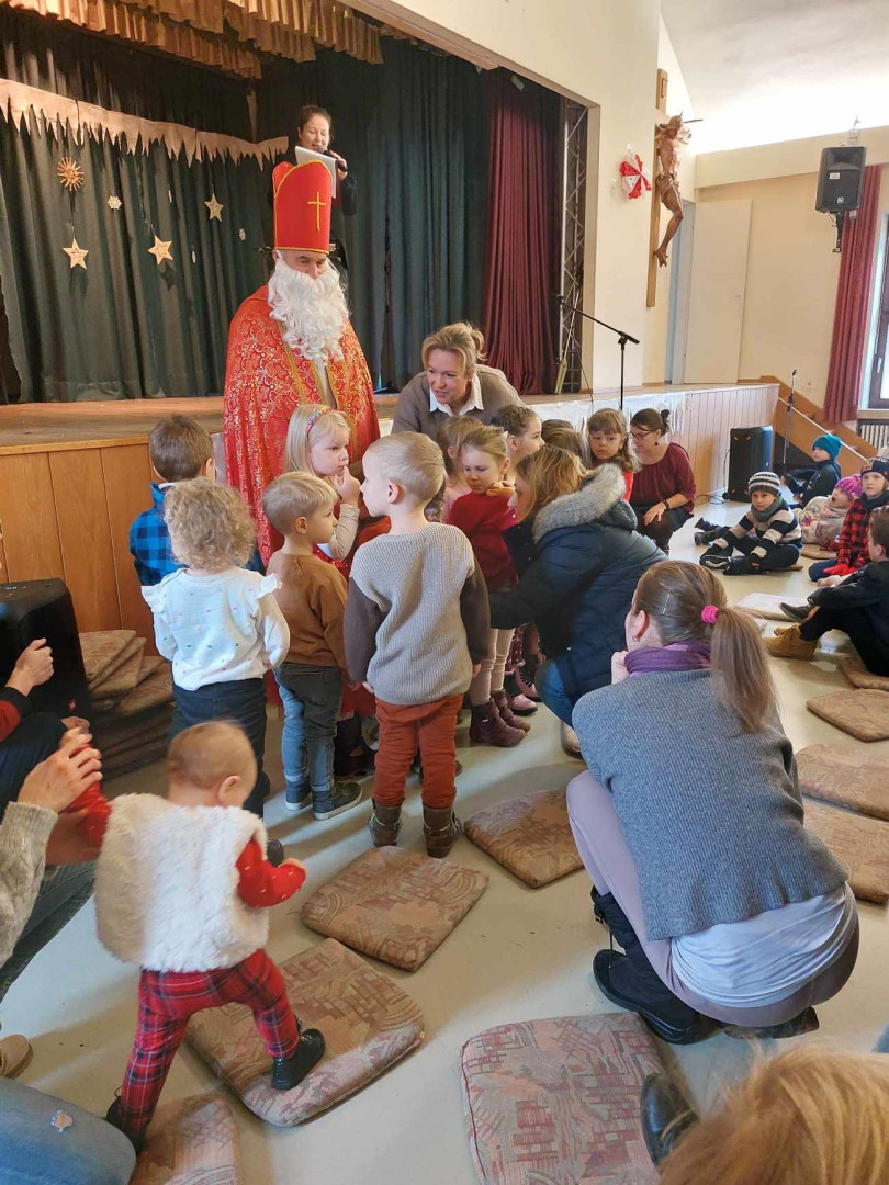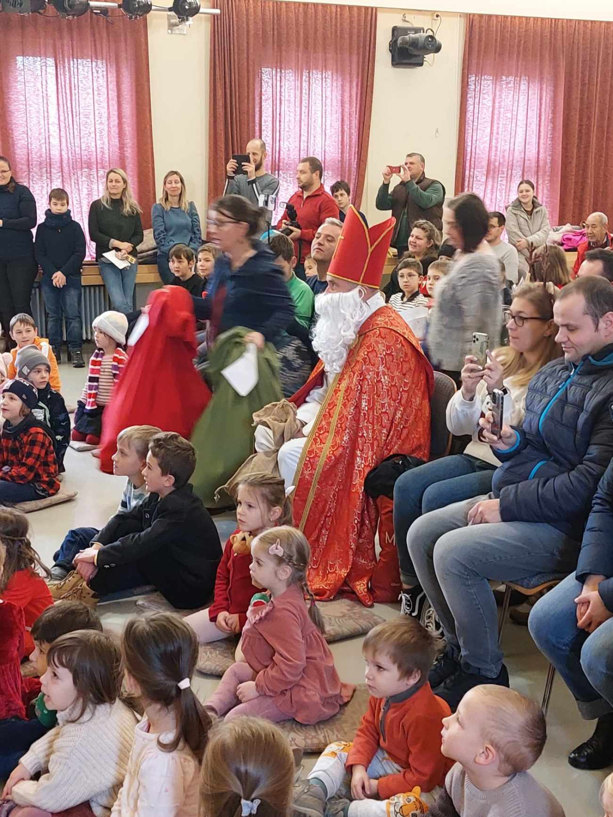 Miklós püspök érkezésével kezdetét vette az ünnepség a St. Maximilian plébánia nagytermében. A hétvégi iskola csoportjai a legkisebbektől a legnagyobbakig ajándékkal készültek erre az alkalomra. Egymást követték a lelkes ajándékozó csoportok. A legkisebbek versekkel, énekekkel kedveskedtek a Mikulásnak. A nagyobbak megelevenítették Szent Miklós püspök egyik sokak által ismert legendáját színjátékukban. Humoros előadásban sem volt hiány, még a Mikulás arcára is mosolyt csaltak játékukkal a gyermekek.