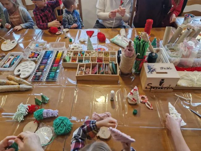 A délelőtti órákban a gyerekek téli témájú barkácsfoglalkozásokon vehettek részt, ahol szabadon kibontakoztathatták kreativitásukat. A kézműveskedést mozgásos népi játékok követték, amelyek során a terem hamar megtelt nevetéssel és jókedvvel. A gyerekek farkasüvöltései egymással versengtek - vajon ki tud élethűbb hangot kiadni, míg mások az „ördög útján” próbáltak minél gyorsabban átszaladni.