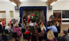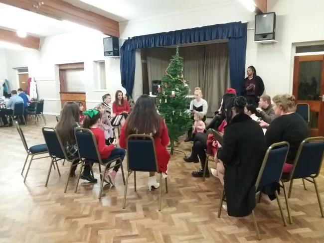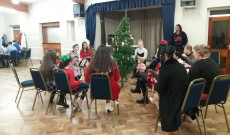 A nagy érdeklődésre való tekintettel ezúttal nem a szokásos közösségi teremben volt a rendezvény, hanem egy jóval tágasabb helyszínt kellett bérelni. A családok délután két órától gyülekeztek. Miközben karácsonyi zene szólt, számos kézműves foglalkozásra nyílt lehetőség. Az egyik legnépszerűbb a mézeskalács díszítés volt, a színes cukorkákkal dekorált finomság a felállított fenyőfára is felkerült díszként. Egy másik asztalnál üveget lehetett festeni és karácsonyi lámpást készíteni. Akik ezeket megunták, díszeket készíthettek papírból vagy karácsonyi üdvözlőkártyát írhattak, a kicsik gyurmázhattak. Négy óra tájékán helyet foglaltunk a karácsonyfa körül és közös dalolással vártuk a Télapót, aki hamarosan meg is érkezett. A gyerekek izgatottan várták, hogy nevükön szólítsa őket és megkapják az ajándékot, a csokoládét rejtő csomagot.