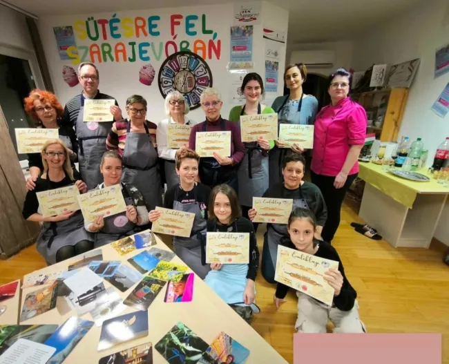A "Sütésre fel, Szarajevóban is!" című gasztronapok rendezvénye valóban több fontosságú és kifejezetten közösségépítő eseménynek bizonyult, hiszen együtt alkottunk, tanultunk. Vendégünk, Cseszkó Ibolya mestercukrász tovább erősítette a közösségi szálakat, hiszen egy tapasztalt szakember által bemutatott technikák és receptek összekötik az embereket, közösséggé formálva azokat. A sütés hagyománya generációról generációra öröklődik, és ezeket az eseményeket megőrizve, éltetve ápoljuk azt a kulturális örökséget itt, a szarajevói magyar közösség körében is. A program végén mindenki emléklapot kapott a sikeresen elvégzett tanfolyamról, a kelt tészta rejtélyeinek elsajátításáért.