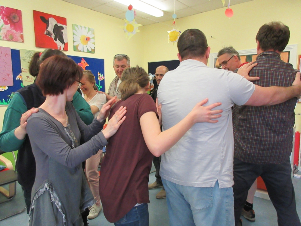 A feladatok sorát egy drámajátékkal zártuk, melyben egy konfliktus kirobbanását majd megoldását kellett megjeleníteniük. A felnőttek láthatóan remekül érezték magukat ebben a játékban, teljesen belefeledkeztek a feladat megoldásába. Nem tudatosan, de sikerült két tökéletes példát hozniuk egy partneri és egy agresszív/autoriter konfliktusmegoldási típusra, melyek segítségével remekül tudtam számukra szemléltetni a két „megoldás” közti különbséget.