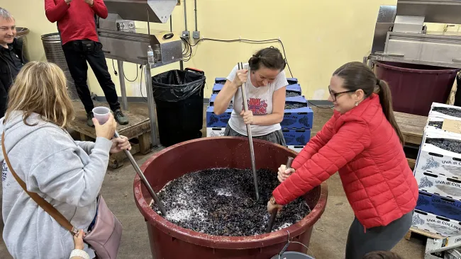 2023. október 5-én landoltunk az USA-ban, és első közösségi programunk a Szilvafa tánccsoporttal egy késői szüretelésű kaliforniai keverék szőlő előkészítése, illetve feldolgozási folyamatainak kezdete a júniusban bemutatásra kerülő Szilvafa borhoz. A délután folyamán megismerkedhettünk a borkészítés lépéseivel, a szüreteléstől a palackozásig.