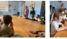 A gyermekeknek szóló ünnepi találkozón egy interaktív történelemóra keretében megismerkedhettek az október 23-i eseményekkel, természetesen olyan előadásmódban, amely segítségével megértették a történteket. Jó volt látni, hogy az óvodás és kisiskolás korosztály mennyi mindent tud Magyarországról, Budapestről. A történelemóra után vasalható gyöngyökből rakták ki a magyar zászlót.