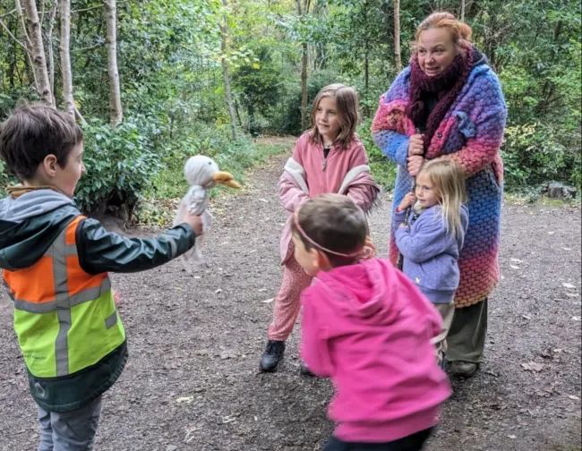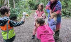 Tíz órára pedig megtelt a tisztás: gyerekek, szülők, kutyák és még egy "unikornislány" is feltűnt a gyülekezők közt. Mindenki elcsendesedett, amikor Berger Noémi, a MesErdő megálmodója belekezdett A Pelikánmadár című magyar népmesébe. Kicsik és nagyok lélegzetvisszafojtva hallgatták, miként alakul a kis főhős, Nemes Gergő sorsa – hiszen jól tudták, hamarosan nekik kell végigjárjni a Gergő által megtett utat, és kiállni a próbákat.