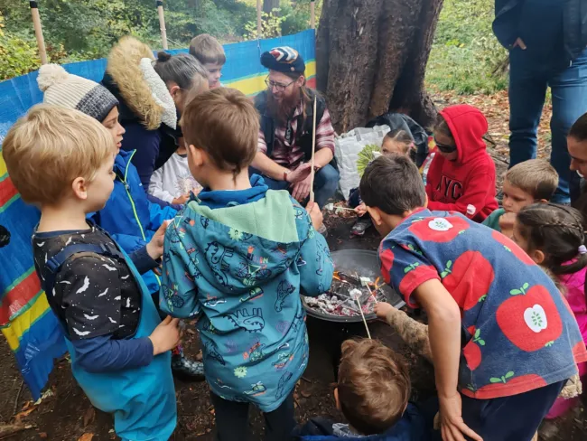A próbát természetesen mindenki kiállta, a sok bátor legényke és leányka a program zárásaként pillecukrot sütögetett, és egy ad-hoc performasz is szerveződött a tisztáson, igaz, ott már a cinegemadár volt a főszereplő (Nád a házam teteje...).
