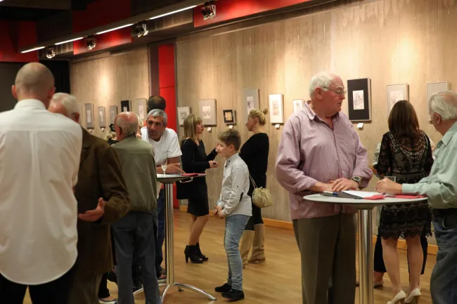 Rohály Ferenc Kárpátalján született alkotó a számomra eddig ismeretlen tollkarc technikával dolgozik. Abban a szerencsében volt részem, hogy láthattam miként áll össze az apró pici vonásokból maga a kép. Ábrázolását tekintve talán a rézkarchoz tudnám hasonlítani, ahol a fehér és fekete váltakozása, az árnyalatok dominálnak. A kiállítás címe „Útközben”, s az önéletrajzot olvasva világosodott meg bennem, hogy Ferit szülei gyermekkorában próbálták elindítani a művészet útján látva rajzolás iránti szenvedélyét, de akkor eltanácsolták, mondván: nem tehetséges. A szorgalom, a kitartás és az erős akarat, az elhivatottság nem engedte őt csüggedni?