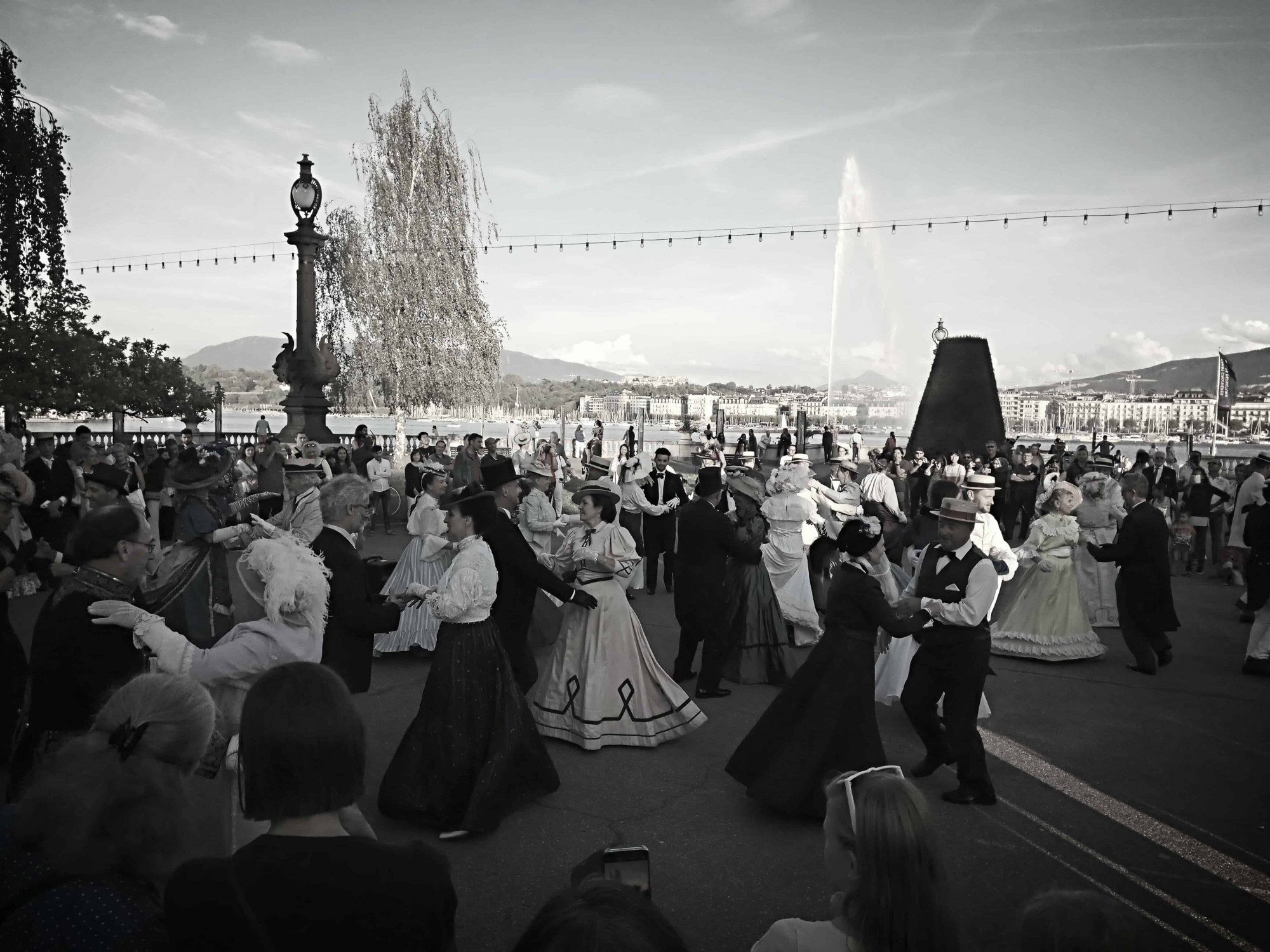 E jeles napon közreműködött még a Genfi Magyar Egyesület, a genfi Sík Sándor Cserkészcsapat, a Studio Kodály, az Ózdi Huszárbandérium és nem utolsósorban az Association des Fêtes Costumées de Genève mintegy ötven, 19. századi korhű ruhába öltözött tagja. A koszorúzás után az ő korabeli táncaikat csodálhatta meg a nagyérdemű a szobor szomszédságában, a Genfi-tó partján. Igazán hangulatos volt, ezzel az oda verődött kíváncsi turisták is egyetértettek. A csoport tagjainak az sem szegte kedvét, hogy már előző nap elkoptatták a tánccipőjüket a szombat esti nagyszabású bálon, aminek szintén a Beau-Rivage hotel adott otthont. Természetesen a magyarok sem maradhattak ki, így az Ózdi Huszárbandérium is fellépett, tiszteletadással és hagyományos tánccal szórakoztatva a vendégeket.