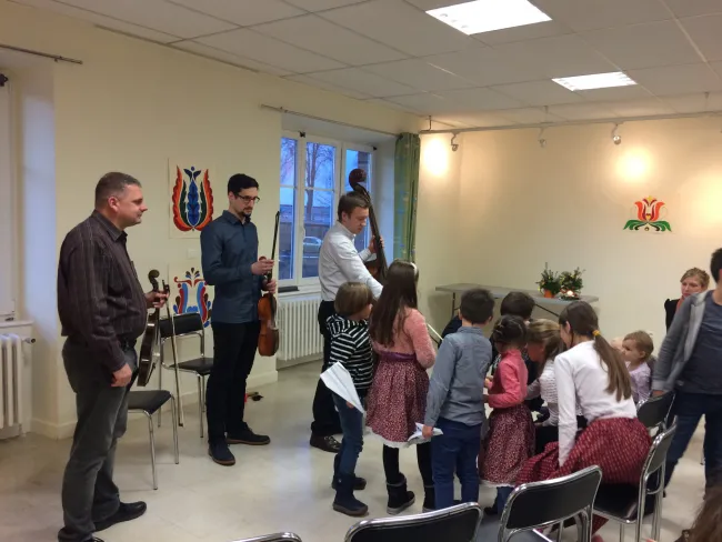 A program elsődleges célja a Strasbourg környékén élő magyarság és más nemzetiségű érdeklődők lelkének feltöltése volt az ünnepekre, ennek színt adva különleges programokkal, meghívottakkal. A megszokott délutáni foglalkozások után meglepetés vendégként érkezett a Stuttgartból érkező három tagú zenekar. A banda prímása Vajda István, aki a Nyugati szél zenekar tagja, Nyugat-Európában számos táncegyüttes és közösség rendszeres meghívottja és muzsikusa, Kemény Andor brácsás, a stuttgarti Csöbörcsök Táncegyüttes férfikar vezetője, valamint Vajda Mátyás bőgőn, a stuttgarti Csöbörcsök Táncegyüttes Körösi Csoma Sándor Program ösztöndíjasa, a banda összefogója. A rövid koncert után Vajda Mátyás hangszerbemutatót tartott, amelyen átfogóan szemléltette a magyar népzenére jellemző három tagú húros banda felállását, hangszereit és hangzásuknak jellegzetességeit. Ezt táncbemutató követte, majd táncház, melyen a Keleti Táncegyüttes ízes magyar mulatságra hívta az érdeklődőket. Az egyesület mézeskalácssütő versenyt hirdetett az alkalom tiszteletére, amire nagy igényességgel és kreativitással készültek a pályázók. A legjobbakat íz és díszítés kategóriában díjazták.