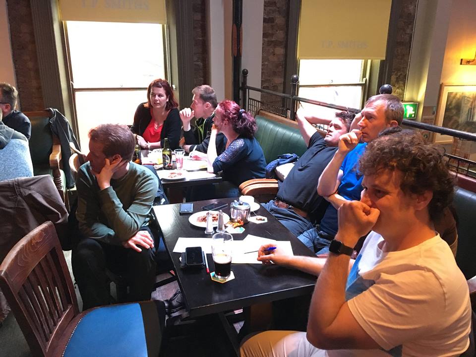A rákövetkező hétfőn, szeptember 24-én az idén 10 éves jubileumát ünneplő Quiznight.hu által szervezett ún. Kocsmakvíz (3. kép) idei évada vette kezdetét. Igaz, hogy Dublinban ez még csak a 3. évad, viszont a kezdetektől fogva páratlan népszerűségnek örvend. A műveltségi társasjátékot egyébként anno Tóth Tamara ösztöndíjas honosította meg, és kéthetente játsszuk, illetve most már játsszák, ugyanis a mindenkori ösztöndíjas van megtisztelve a kvízmester szerepével.