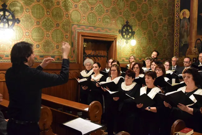 2025. október 8-án különös és szimbolikus találkozásnak lehettek tanúi mindazok, akik ellátogattak a Collegium Pazmanianum kápolnájába. Aznap mintha két „bazilika” is jelen lett volna e kis templomtérben: egyrészt mert a nap liturgikus emlékezése a lateráni bazilika felszentelésének ünnepéhez kapcsolódott, másrészt mert a szentmisén és az azt követő koncerten a budapesti Szent István Bazilika kórusa szolgált. A különleges „találkozás” mintegy jelképe is volt annak, hogyan fonódik össze a magyar és az egyetemes egyház hagyománya a zenében és a hit egységében.