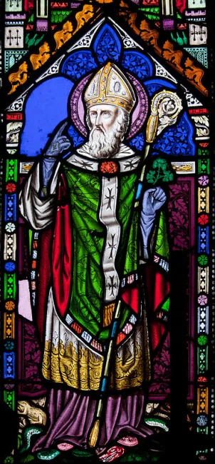 Szent Patrik keresztény térítő volt, akit leggyakrabban Írország védőszentjeként, vagy Írország apostolaként tisztelnek, jóllehet ezt a címet Írországi Szent Brigitta és Szent Kolumba is megkapták. Szent Patrik a római Britanniában született, apja, Calpornius diakónus volt, nagyapja, Potitus pedig pap. Tizenhat éves korában elrabolták és rabszolgának Írországba hurcolták. Itt Patrik pásztorként dolgozott és hat évig maradt fogságban. Azt írja, hogy hite nőtt a fogságban, valamint naponta imádkozott. Hat év elteltével egy hangot hallott, ami azt mondta neki, hogy hamarosan haza fog menni, majd azt, hogy a hajója készen áll. Urától elszökve egy kétszáz mérföldre lévő kikötőbe utazott, ahol talált is egy hajót. Különféle kalandok után hazatért családjához az immár húszas évei elején járó ifjú. Miután felvették az egyházba, felszentelt püspökként tért vissza Írország nyugati és északi vidékeire, azonban kevéssé ismertek itteni működési helyei. Már a hetedik században Írország védőszentjeként tisztelték.