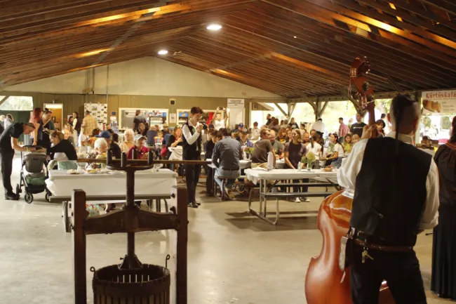 A parkolóba érkezőket a bográcsban készülő gulyás, a kürtőskalács, lángos és sültkolbász illata csalogatta közelebb és persze senki nem maradt éhen. Aki haza is szeretett volna vinni a finom falatokból, az a kirakodóvásáron magyar süteményeket, kolbászt, fűszerpaprikát és sok egyebet találhatott. Magyarországon számunkra ez mindennapos, de a világ ilyen távoli pontján ez igazi kincsszámba megy, ahogyan az is, ahogy ezek a hagyományörző programok fent tudják tartani a magyarság nemzeti tudatát. A szüret egyik fénypontja egyértelműen a szőlőpréselés volt, amiben kicsik és nagyok egyaránt kipróbálhatták magukat, és ugyan olyan boldogsággal csendültek fel utána a népdalok, függetlenül attól, hogy a világ mely pontján “érett az a szőlő”.