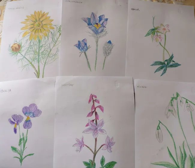 A gyerekekkel a magyar tavasz virágaival ismerkedtünk meg: megtanultuk, milyen színes növények díszítik az erdők alját és a réteket – mint a hóvirág, az ibolya, a kökörcsin vagy a hérics. Ezeket nemcsak képeken, hanem játékos formában is „megismertük”: mozgásos játékkal döntöttük el, mit lehet szedni az erdőben – hóvirágot vagy ibolyát?