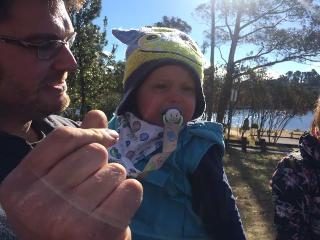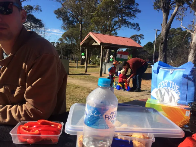 Mintegy 10-12 család (kb. 40 fő) gyűlt össze a Wentworth-i tó partján, egy téli reggelen, július 15-én, szombaton, hogy közösen töltsék el a szabadnapjukat. Az ilyen események mindig egy nagy utazással kezdődnek, hiszen itt Sydney-ben a távolságok jelentik az egyik legnagyobb kihívást. Volt, aki akár száz kilométert is utazott hogy az óceánparti városrészből Wentworth Fallsba érjen, nekünk ösztöndíjasoknak ezúttal csak 50 km-t kellett megtenni Blacktown városnegyedből. A távolság nem zavart, a sűrű felhőzet annál inkább, de szerencsére, mire a tóhoz értünk ennek már nyoma sem volt, és a ragyogó idő megmaradt a nap hátralévő részében is.