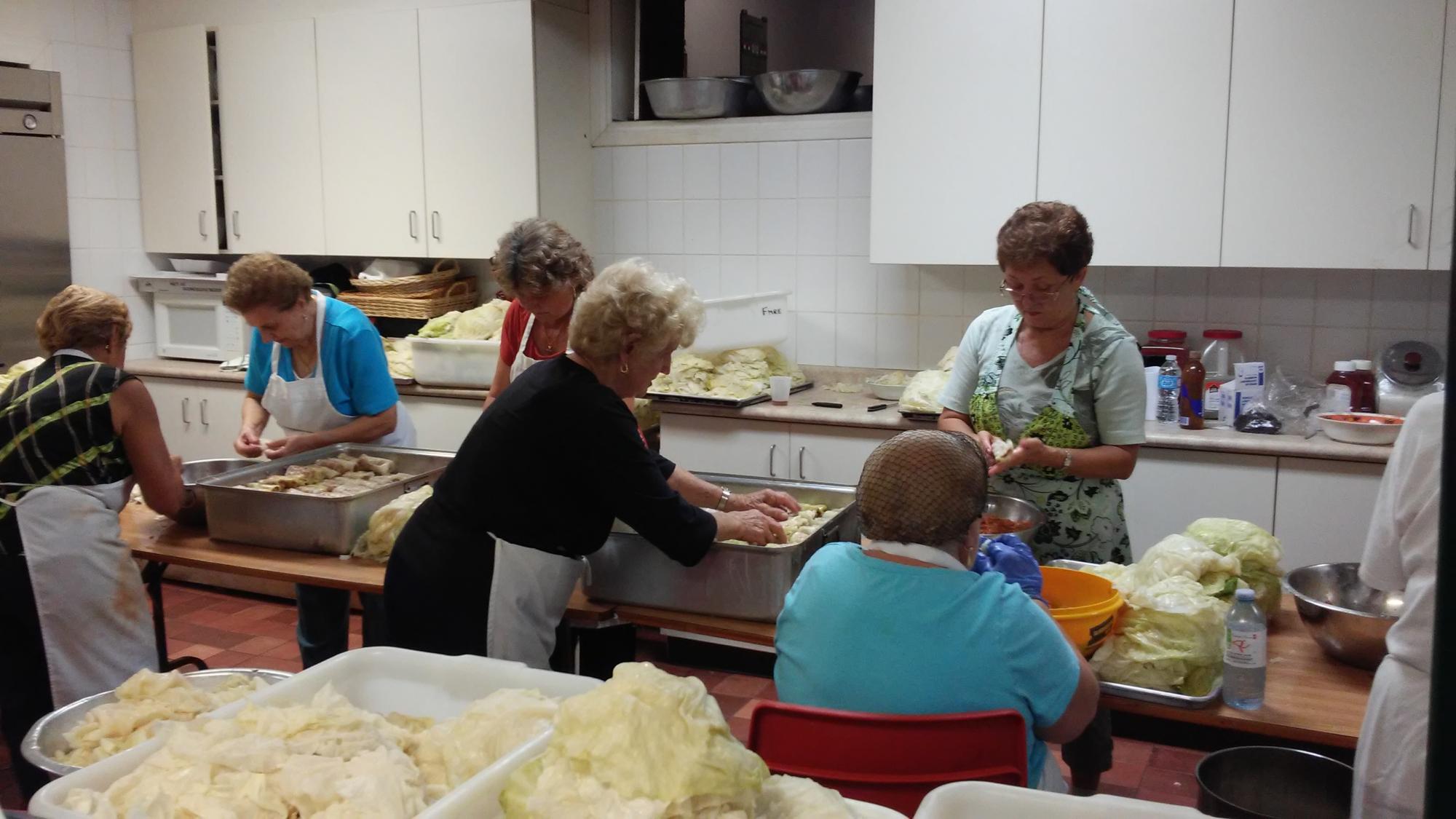 Az önkéntesek már nyár óta készültek az októberi eseményre: többen közülük augusztus óta heti rendszerességgel találkoztak a kulturális központ jól felszerelt konyhájában, ahol tepsi számra készítették a diós és mákos bejgliket, a tepertős pogácsát, zserbót és a különféle aprósüteményeket. De a munka java csak a vásár előtti napokban kezdődött: a máskor kulturális rendezvényeknek helyet adó magyar ház csarnokába 450 kg disznóhús érkezett, amelyet férfi önkéntesek daráltak és ízesítettek paprikával, hagymával, májjal, szalonnával. Amíg a csarnokban a kolbásznak és tölteléknek való hús készült, a konyhában az asszonyok 200 fej káposztát szedtek leveleire és készítettek elő a másnapi káposzta töltéshez. A vásár előtti napon 12 asszony reggel 9-től este 10-ig formázta a hússal töltött tekercseket, mert, mint mondják, akkora rá a kereslet, hogy bármennyit készítenek, szinte rögtön elkapkodják a vendégek. Munkájuk eredményeképp másnap közel 9000 káposztatekercs várta tepsikbe halmozva az éhes vendégsereget.
