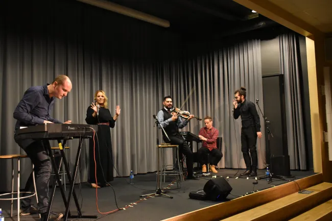 A Tóth Vera Quartet: Tóth Vera (ének), Bérces Viktor (billentyű), Duka László (hegedű), Molnár Tibor/Trap Kapitány (beatbox, szájdob) koncertjének a Göteborg szívében található Folkets Hus rendezvényközpont adott helyet. A Kőrösi Csoma Sándor Művelődési Kör együttműködött egy helyi, magyar termékeket árusító kisvállalkozással, melynek köszönhetően az előadás előtt magyar ételekkel töltődhettek fel az idelátogatók.