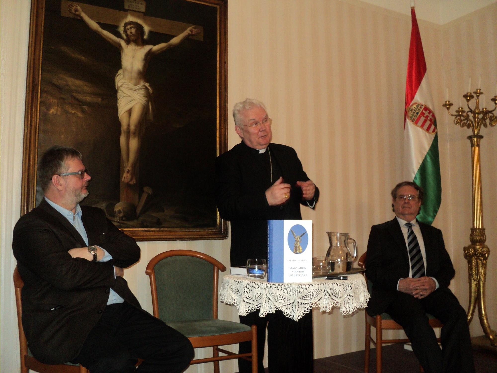 Szabó Csaba történész, a Magyar Nemzeti Levéltár főigazgató-helyettese Bécsben elmondta: az olvasó elsőrangú történelmi munkát tart a kezében, műve összeállításakor a szerző hiteles adatokra, levéltári, plébániai és magániratokra, levelezésekre, visszaemlékezésekre és a szakirodalomra támaszkodott. Rendkívül gazdag jegyzetapparátus segíti az olvasót az értelmezésben és igazolja a könyv lapjain szereplő állításokat. „A szerzőt dicséri az élvezetes, szépirodalmi stílus és az alaposság, a kiadót az igényes tipográfia” – jegyezte meg Szabó Csaba. A könyvben részletesen bemutatott fél évszázadot így jellemezte: az is a magyar történelem, a magyar emigráns történelem, a magyar katolikus egyház történelme a létezett szocializmus időszakában. „Münchenben így építkezett az emigráns katolikus magyarság. Számvetés is a könyv. Mindenképpen üdvözlendő lenne, ha Bécsben is elkészülne egy hasonló visszapillantás” – tette hozzá a történész.