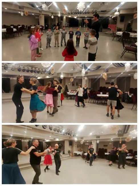 A próbák nagy lelkesedéssel kezdődtek. Ahogy az ilyenkor lenni szokott, a karácsonyi asztal bőséges finomságait is „le kellett dolgozni”, ezért mindenki felkészülten, a bemelegítéshez szükséges sportruházatban érkezett. A bemelegítések során nemcsak alaposan átmozgattuk magunkat, hanem új mozgáskoordinációs feladatokat is tanultunk, amelyek nagy segítséget jelentenek a páros táncok elsajátításában.