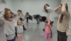 A foglalkozást bemelegítő labdás játékkal indítottuk, ez adott egy kötetlenebb, fesztelenebb hangulatot a megilletődött gyerekeknek. Majd egy gyorsaságot és figyelmet is igénylő játékkal játszottunk párban, amely során a testrészek neveit gyakoroltuk. Ezután az újévi szerencse szimbóluma, a lencse is megjelent – igaz, nem hagyományos formában, hanem lencsegolyóként! Bár a gyerekek nem igazán rajongtak érte, a felnőttek körében nagy sikert aratott.