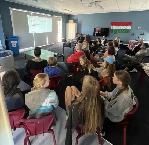 A nap különlegessége az volt, hogy egészen a Pécsi Egyetemről érkezett két vendég, Dr. Jarjabka Ákos és Schóber Tamás, akik a diaszpórák közötti kapcsolatokról és tovább tanulási lehetőségekről tartottak előadást. A delegáció bemutatta, hogy: