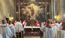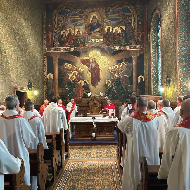 A szentmise szónoka Varga János, a Pázmáneum rektora volt, aki lelkigyakorlatos jellegű homíliájában a papi hivatás hűségének és a magyar keresztény örökség megőrzésének jelentőségéről elmélkedett. Szavait Pázmány Péter és Mindszenty József életpéldájára építette, akik – mint fogalmazott – „a hitben gyökerező nemzeti tartás” megtestesítői voltak. Hozzátette, hogy bennük is megvolt az a radikalitás, amit Antiochiai Szent Ignác a következőként fogalmazott meg: „Fogjátok hát be füleiteket, ha valaki úgy akar benneteket oktatni, hogy mellőzi Jézus Krisztust!”