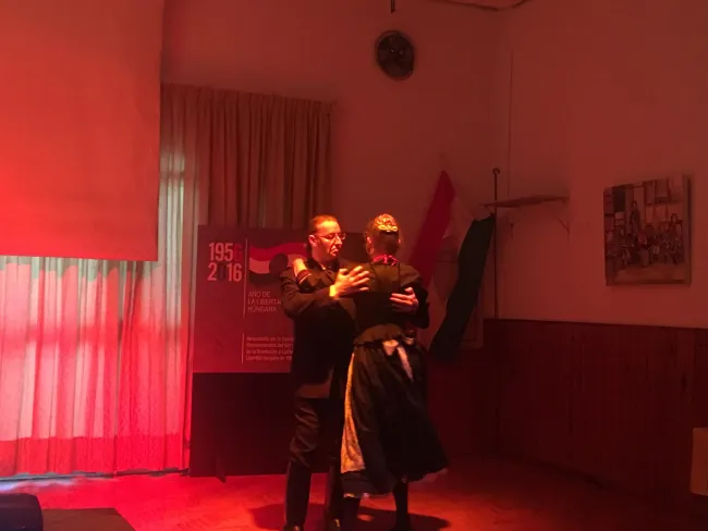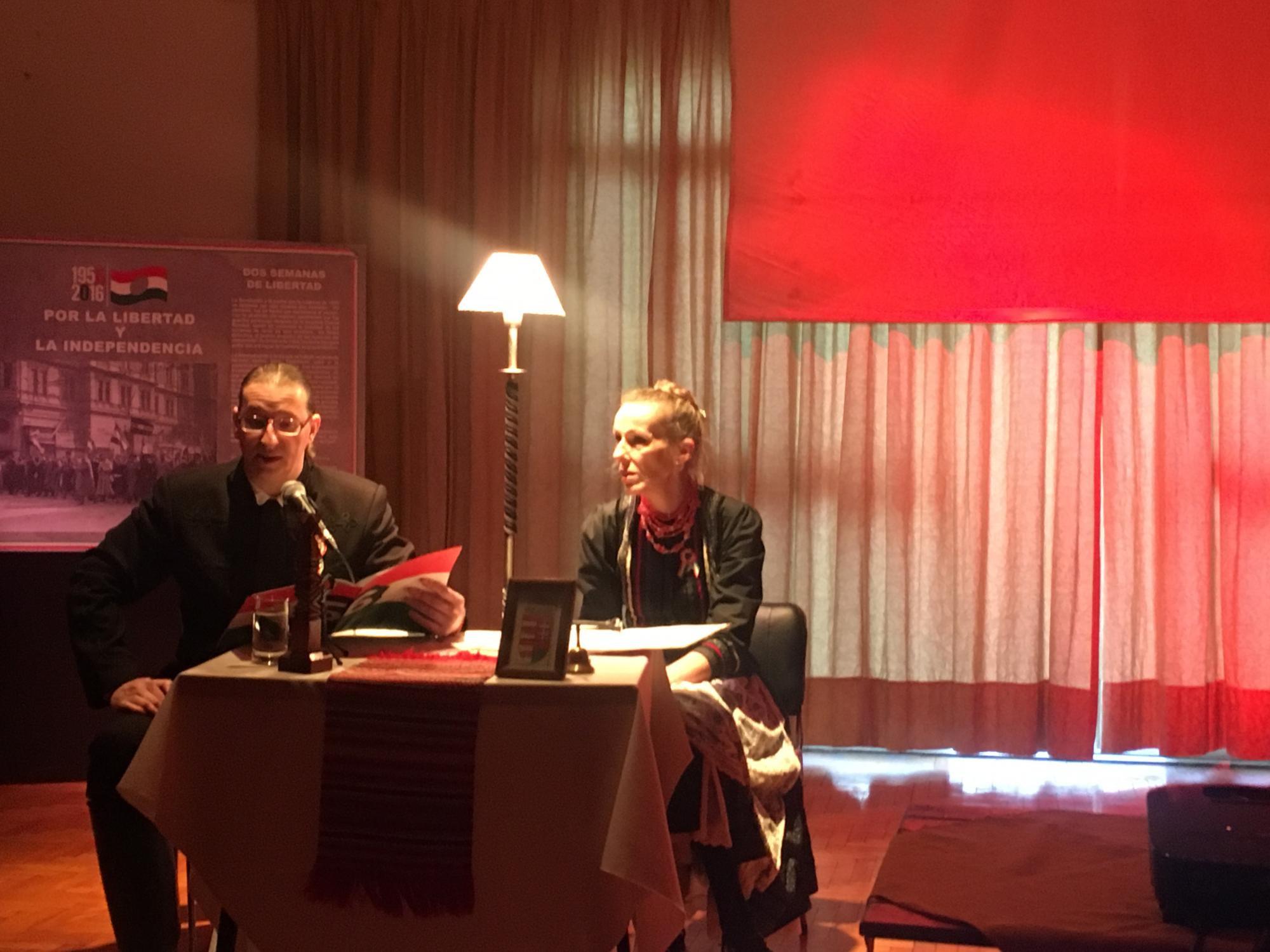 A műsorban Zólyomi Katalin és Tcharykov Sergio léptek fel. A művészek előadásuk alatt magyar és külföldi költők 1956-ot idéző műveiből válogattak, melyeket spanyol nyelven adtak elő az összegyűlt tömegnek. Hallhattunk Illyés Gyula, Tamási Lajos és Márai Sándor szerzeményeket egyaránt. A versek között az előadók néptáncbemutatót is tartottak. Az előadás után 1956-os forradalom és szabadságharcról készült kiállítást tekinthették meg a nézők.