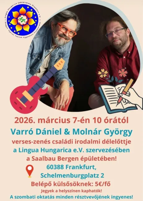2026. március 7-én Frankfurtban járt Varró Dániel költő, és barátja, Molnár György zeneszerző, gitáros.