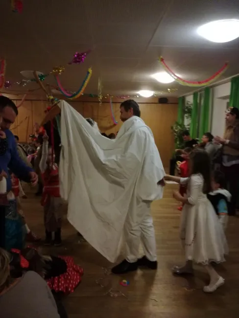 A Magyar Katolikus Misszió épülete adott otthont a müncheni magyar családok télűző mulatságának 2017. február 11-én. A hagyományos, magyar népszokásokat felelevenítő farsangi délután során, ahogy a vers tartja, csárdást járt a habverő, bokázott a máktörő.