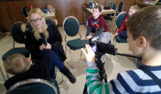 Amíg az idősebbek oktatóik segítségével filmeket és animációt készítettek, a legkisebbek egy saját színpadi előadásra készültek fel. Hétfőtől csütörtökig szorgos kis kezek színezték, vágták és ragasztották a történethez szükséges jelmezeket és díszleteket és maszkokat. A barkácsolás közben pedig minden nap szakítottunk időt a színpadi próbákra is, hiszen az apróságok számára nagy kihívást jelentett a magyar nyelvű szövegek tökéletes elsajátítása. Ennek ellenére a kis színészpalánták a pénteki nagybemutatón sem szeppentek meg, és elmondásuk alapján kifejezetten élvezték a fellépéssel járó rivaldafényt.