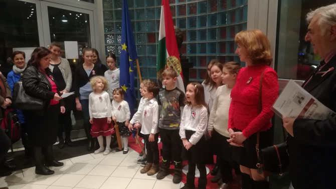Dr. Perényi János nagykövet ünnepi köszöntőjét megelőzően az ünnepi megemlékezés a magyar himnusz eléneklésével…