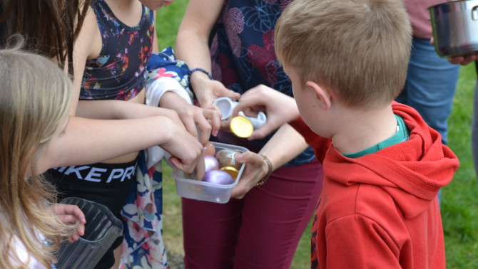 Vers tanulás, tojásfestés, és locsoló eszköz keresés vette kezdetét 2025.04.12-én a Manchesteri Gorse Hill Studios…