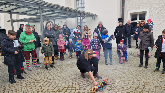 A Southendi Magyar Iskola kis növendékei télűző Boszitánccal seprűzték ki az idei telet Gryllus Vilmos Banya dalára…