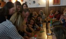 A kvíz első része után ismét egy kis tánc következett, amikor a magyarbődi lassú csárdás figuráival ismerkedtek meg a jelenlévők. A tánc utáni pihenőben egy kis ország-város játék után kihirdettük az eredményt. Még soha nem találkoztunk a déli magyar közösség tagjaival, akik most megtiszteltek minket jelenlétükkel. Kitűnően beszéltek magyarul, lelkesen vettek részt a programokban, és meglepően jól ismerték Magyarországot. Mindig nagyon jó érzés általunk még nem ismert helyi magyarokkal találkozni, beszélgetni velük. A csapatversenyt is ők nyerték meg, nagyon örültek a bónusz dobostortának. A tánctanítást moldvai táncokkal zártuk, miután az idősebb korosztály tagjai elindultak haza.