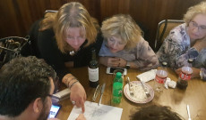 Az első tánc után kezdetét vette a vacsora, majd egy újdonság következett az itteni táncházak történetében: egy rövid kvízestre invitáltuk az érdeklődőket. Három csapatot alkottunk, figyelve arra, hogy mindenütt legyen egy „beépített ember”, aki tud segíteni, ha a magyarul nem beszélő csoporttársai elakadnak valahol. Próbáltuk olyan kérdésekből (mind magyarul, mind spanyolul feltéve) felépíteni a keresztrejtvényt, melyekre mindenki tudja a választ, aki már valaha hallott Magyarországról, hiszen a cél az volt, hogy mindenki jól érezze magát amellett, hogy valami újdonságot tanulhatott a hazánkról.