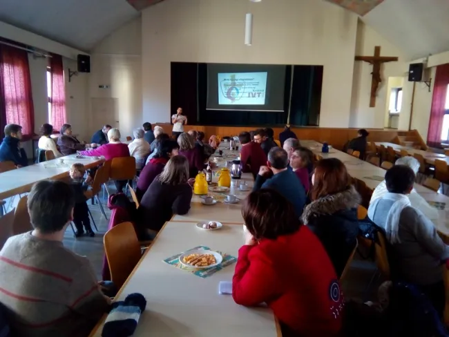 Rendhagyó módon, mert ritkán jutok el hozzájuk hétvégente, februán 5-én, vasárnap az augsburgi magyarokhoz látogattam. Náluk, mivel havonta kétszer van szentmise és agapé, mindig nagyobb közösség gyűlik össze a Szent Maximilian templomban (Franziskanergasse 4). Az augsburgi kirándulásomnak volt egy apropója is: természetesen itt is bemutathattam a nyári élményeimet, a Krakkói Ifjusági Világtalálkozót.