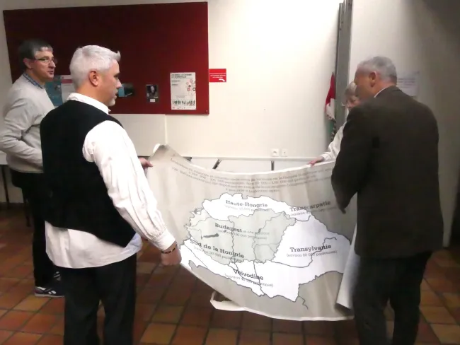 A forradalom előzményeit bemutató megemlékezés a France Hongrie Dauphiné egyesület által rendszeresen használt városi közösségi teremben valósult meg. A program fő előadója Havasi János, a Párizsi Balassi Intézet igazgatója volt. Bemutatta „Malenykij Robot" című kiállítását, mely rengeteg magyarnak állít emléket, akiket elhurcoltak Oroszországba. A kiállítás után Reményi György, a grenoble-i magyar egyesület elnöke bemutatta az „Èn Forradalmam" címü könyvet, melyben saját írása is szerepel. Gyomrai István egykori harckocsiparancsnok emlékeivel folytatódott a program, ezután egy mezőségi népdalt énekeltem. Végül egy Grenoble-ban élő francia-magyar származású hölgy Magyarországról szóló versét hallgathatta meg a közönség francia majd magyar nyelven. Azért különösen értékes ez a vers, mert Ilona felnőttként kezdett magyarul tanulni a grenoble-i egyesület által szervezett magyar órákon, ahol én is rendszeresen találkozom vele. A megemlékezés állófogadással zárult, melyhez a vendégek járultak hozzá enni és innivalóval.