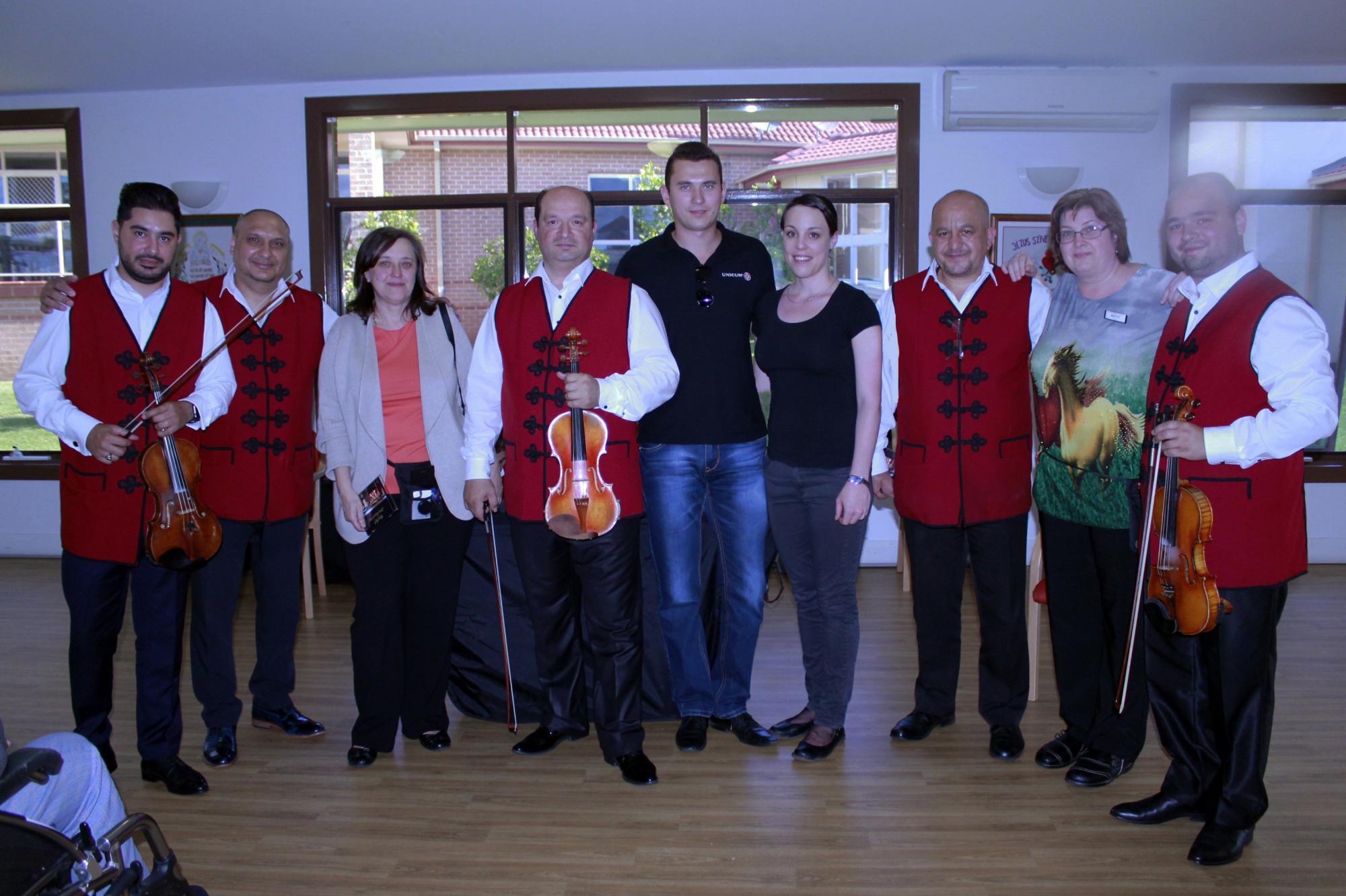 Az idei évben a számos esemény közül az egyik legemlékezetesebb a Magyarországról érkező Rajkó Zenekar vendégszereplése volt, akik ausztráliai koncertturnéjuk alkalmából meglátogatták az otthon lakóit is. A százhúsz férőhelyes létesítmény közösségi terme zsúfolásig megtelt a tiszteletükre. Mindenki kíváncsi volt nemcsak a zenekar műsorára, hanem arra is, hogy milyen emlékeket idéznek fel bennük a régen hallott dallamok. Hiszen mindannyian szeretnek visszagondolni az otthon töltött fiatalságukra, és nosztalgiázva mesélni róla. Ebben pedig nagy segítség a zene. Az öttagú zenekar előadásának első részében egy összeállítással kedveskedett az időseknek, a szünet után pedig megpróbált a lehető legtöbb kérésnek eleget tenni, és mindenki kedvencét eljátszani. Így többen is elmondhatják, hogy itt, a messzi kontinensen egy cigányprímás húzta el a nótájukat. Különösen megható volt látni, ahogy a 103 éves Magdi néni és a 102 éves Tóni bácsi kívánságát teljesítették, hiszen számukra ez valószínűleg még többet jelenthetett, mint a többieknek, de mindenki tudott örülni a másik boldogságának, és kíváncsian várták egymás kérését. A legtöbben régi, siratós zenét szerettek volna hallani, ami az otthont, a régi szülői házat vagy a képzeletükben ma is fel-felvillanó tájat idézi, de a végén felcsendült pár vidámabb dallam is, így a délután jó hangulatban, derűsen zárult.