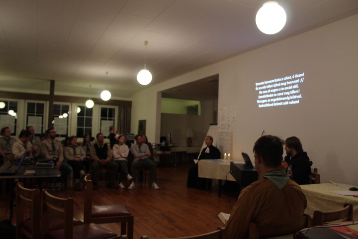Jablonkay Péter (Grizly) meghívására csütörtök este istentiszteletet tartottam a csapatvezetőknek. A kalandos megérkezést követően alkalmunk nyílt betekintenünk a szövetség aktuális kérdéseibe, melynek lényege a cserkészet keresztyén vagy keresztény alapjainak értelmezése a mai kihívások között. Több morális, filozófiai és teológiai kérdés vetődött fel, melyek közül jómagam inkább az utóbbihoz tudtam szakmailag hozzászólni. De elsősorban nekem nem ez volt itt a feladatom, hanem Isten igéjének hirdetése. Jézus lecsendesíti a tengert. Lukács evangéliumának nyolcadik fejezetében található csodás történet azt hozta elénk ezen este, mikor Jézus tanítványaival hajóra szállt a Gallileai tó partján. Miközben a tömeg elől a tulsó partra eveztek, vihar tört rájuk és félelmükben az alvó mesterhez kiáltottak. Jézus lecsendesítette a tengert és így szólt hozzájuk:"Miért féltek kicsiny hitűek?" A prédikáció elején a Tabu játék elemei segítségével öt kulcsszót kellett kitalálni, melyek megadták az igehirdetés lényegi tartalmát. Jézus Krisztus uralkodik a természeti elemek felett. Ő azonban nemcsak a tengert, de a tanítványokat, sőt a problémák miatt aggódó, olykor háborgó embereket is lecsendesítette és ez így van ma is. Nyilván az aktuális problémákat elsősorban nekünk kell megoldani, de nem mindegy, hogy segítséget ehhez honnan kérünk és honnan kapunk. Az istentiszteleten közösösen énekeltünk zenei kísérettel, amely talán segített ráhangolni a jelenlévőket a cserkészet keresztyén alapjának megértéséhez, mert itt binyony nem csak testi, de lelki próbatételekről is szó volt. A konferencia további napjaiban a téma folytatódott, de a környéken tett kirándulás minden bizonnyal segítette a csapatvezetők gondolatainak összefésülését.