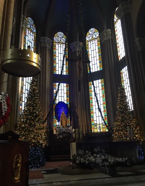 Visszarobogás az Intézetbe, kocsicsere, isztambuli vezetés, parkolóhely-vadászat, rövid séta, aztán maga a csoda! Nemcsak a vendégeinknek, minden egyes alkalommal számomra is. Isztambul Váci utcája az İstiklal Caddesi, hatalmas forgatag, mindenféle nemzet, bábeli sokszínűség. Itt sétálva, egyszer csak egy velencei neogótikus stílusban épült római katolikus templom elé érünk, impozáns kapukkal, három hatalmas rózsaablakkal; védőszentje Páduai Szent Antal. Itt is tömeg vesz körbe minket, hiszen hatalmas látványosságnak számít az adventi időszakra feldíszített templom. A meglepetés pedig az, hogy itt szolgál három moldvai csángó magyar szerzetes. Rövid telefonos egyeztetés után egyikük elénk is siet, és a szerzetesek magánrészlegébe invitál minket. Felkaptatunk,a templom tetejére, ahonnan az egész bizánci félszigetben gyönyörködhetünk: látszik a Kék mecset, Hagia Sophia, a Topkapi Szeráj, az Orient Express végállomása, és persze az egész Boszporusz. Erre még a stáb sem számított. Ekkor gondoltam azt, hogy a gondviselés végigkísérte az egész napunkat. De nem sokáig gyönyörködhettünk ebben a fantasztikus kilátásban, mert a magyar programok is haladtak tovább. Taxiba pattantunk – aki volt már Isztambulban, az tudja, hogy ez is egy külön élmény –, visszasiettünk az Intézetbe, ahol már gyülekeztek a résztvevők az esti felnőtt programra, az adventi összejövetelre. Ezt az év végi találkozási lehetőséget mindenki nagyon várja, hiszen kötetlenül beszélgethetünk, és a népszerű karaoke segítségével jókat is szórakozhatunk. A karácsony elengedhetetlen kelléke a mézeskalács és a bejgli, melyeket mentorommal közösen sütöttünk meg, és mondhatom, hogy igen nagy sikere volt. Az est folyamán a stábnak lehetősége volt arra is, hogy rövid riportokat készítsenek a helyi közösség tagjaival, segítőivel és az Intézet vezetőjével is.