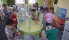 Amikor megérkeztem egy csoport volt, picik nagyok együtt. Majd napról napra, hétről hétre egyre többen csatlakoztak, így szeptember végétől már két csoportban tanulnak a gyermekek. A kiscsoportba három éves korig járhatnak. Ebben a csoportban még inkább csak felkészítés folyik az óvodára, még együtt a szülőkkel mondókáznak, dalolnak, együtt játszanak a nekik készített készségfejlesztő játékokkal, de kihagyhatatlan a kézműves foglalkozás, a nagymozgás és minden alkalommal előkerül egy mese is, amit meghitten hallgatnak a mesekuckóban. Sikertörténet, azt hiszem, mert a pár gyerekből akik az elején csatlakoztak, ma már 12 rendszeresen járó pici szívja magába a magyar nyelv szépségeit hétről hétre.