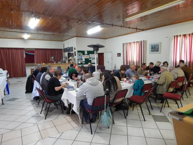 A vasárnapi tanítást mindig közös ebéd követi, ilyenkor már olyanok is csatlakoznak, akik a nyelvórán nem vesznek részt, vagy csak családtagjukat kísérték el a Johannesburg agglomerációjához tartozó Midrandbe. A midrandi Magyar Tanya évtizedek óta a Dél-afrikai Magyar Szövetség székhelye, egy óriási területen található tágas épület. A kertben kis játszótér, egy kápolna, egy nyári konyha, a gondnoki lakás és természetesen az 1956-os emlékmű találhatók, a házban két nagyobb terem, színpad, könyvtár, konyha, raktárak és egy bár. A nagyobb teremben terítenek az összejöveteleken és megemlékezéseken, ilyenkor akár kétszáz fő is megjelenik egy-egy rendezvényen. A ház mögötti területen fogunk szeptemberben kispályás futball tornát szervezni, ehhez azonban némi tereprendezés szükséges lesz.