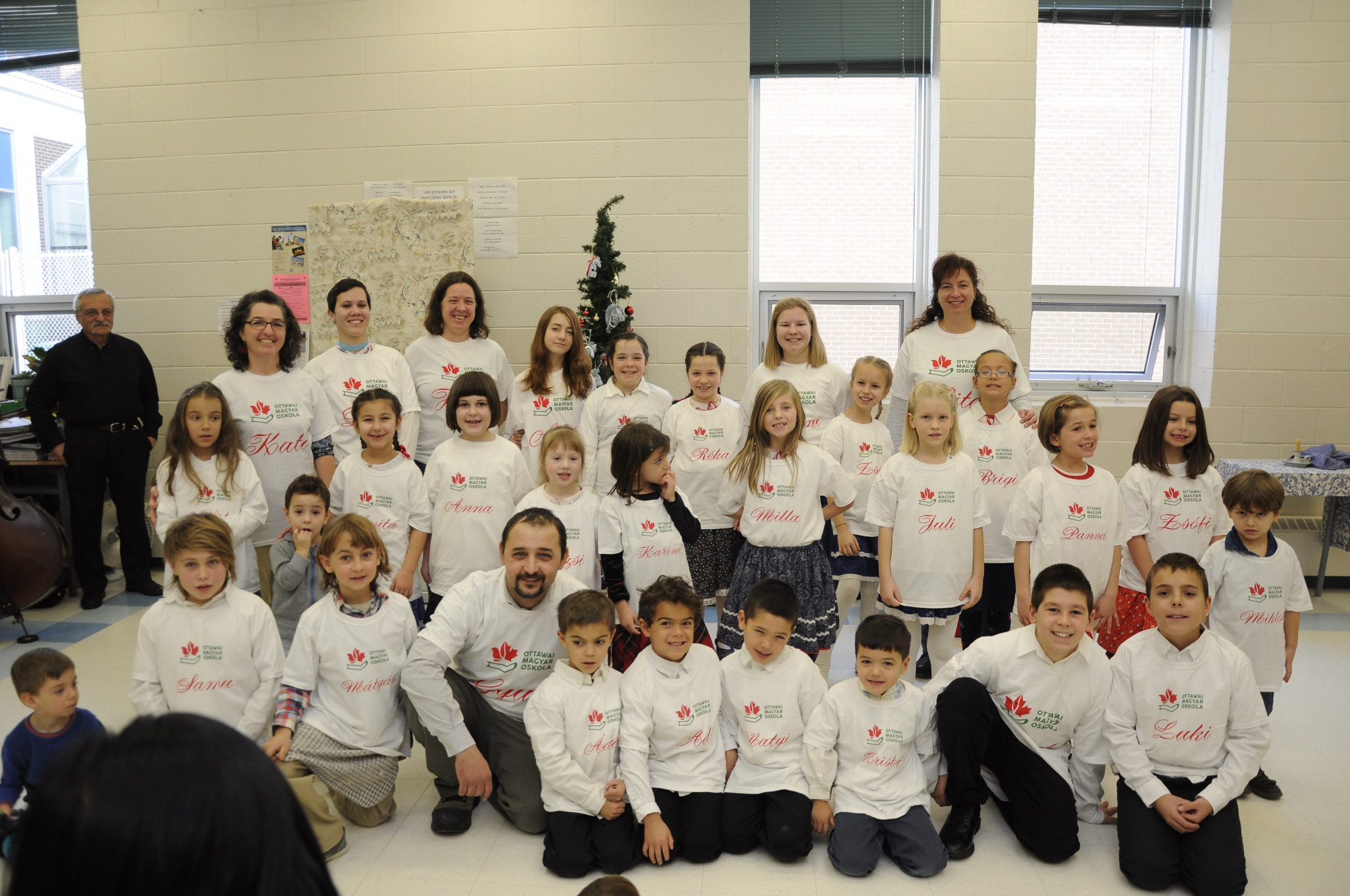 Szombatonként nem csak cserkészetre járok, hanem a magyar iskolába is. Ott tanulok magyar nyelvet, néptáncot, néprajzot, néha kézműves foglalkozás is van. Természetesen nem maradhatott el idén sem az iskolai karácsonyi műsor. Ott eljátszottuk Jókai Mór: Melyiket a kilenc közül? című darabját. Karácsonyi verseket szavaltunk és megmutattam a testvéreimnek, anyunak-apunak, hogy milyen néptáncokat, népdalokat tanultam. Mindezt egy élő zenekar kísérte. Volt hegedű, brácsa, nagybőgő, minden! Nem semmi!