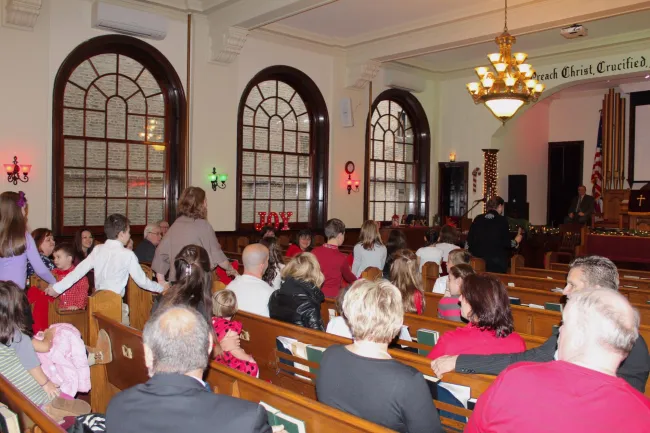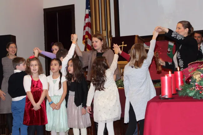 Vasárnap reggel az iskola tanulói szüleikkel, és tanáraikkal, valamint a New York-i Szülői Tanári Egyesület vezetőségének képviselőivel gyülekeztek a templomban, ahol nagyon megható és kedves fogadtatásban részesültek. A közösség tagjai meleg szeretettel fogadták a megjelenteket, és még ők voltak hálásak, hogy együtt ünneplünk velük. A gyülekezet kórusának gyönyörű előadását, és a gyerekek szívmelengető játékát követően adták elő az AJMOI-is diákok, az alkalomra begyakorolt, karácsonyi néphagyományokat bemutató műsort. A gyerekek énekekkel, versekkel és körtáncokkal mesélték el a Megváltó születését, és mondtak köszöntőt karácsony ünnepére.